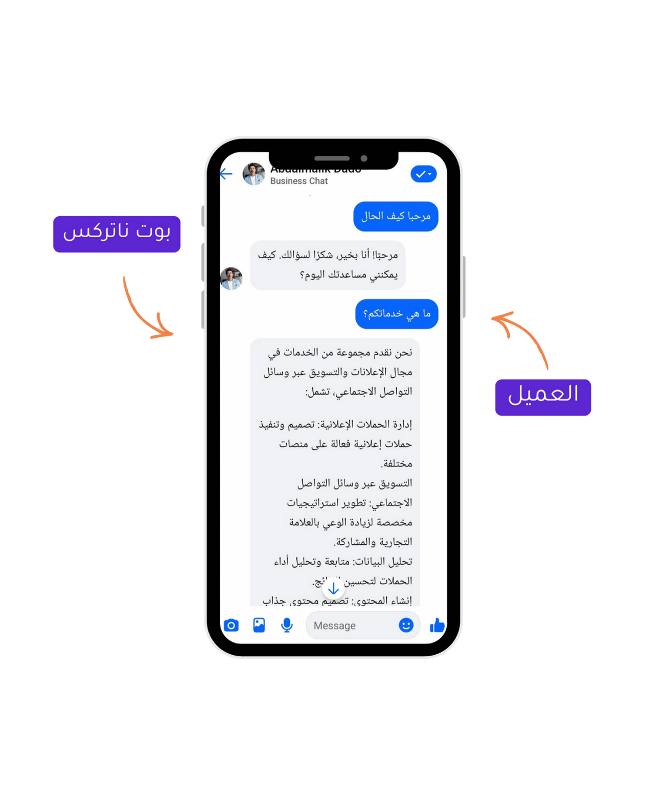 نظام شات بوت متكامل بالذكاء الاصطناعي، مصمّم خصيصًا لمجالك ويشتغل 24/7